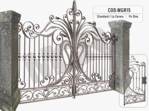 Setul de porti fier forjat MGR 22 este realizat prin forjare din fier brut . Forma impresionanta a arcadei realizata din fier forjat ofera un aspect elegant pentru intreaga lucrare. Se poate executa pe dimensiuni standard sau dimensiuni la alegere. Este ideal pentru case moderne, stil contemporan, stil rustic, stil clasic.